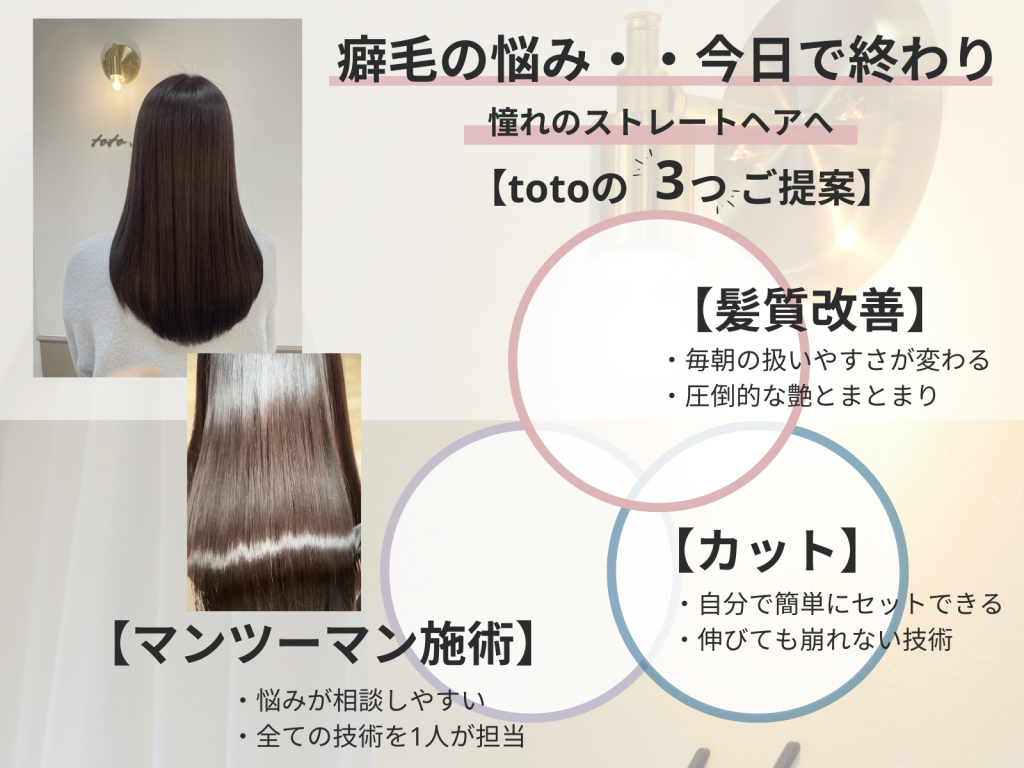 もう癖毛で悩まない!憧れのストレートヘアになれる*当店の3つの特徴 さいたま新都心・与野髪質改善美容室トトヘアー