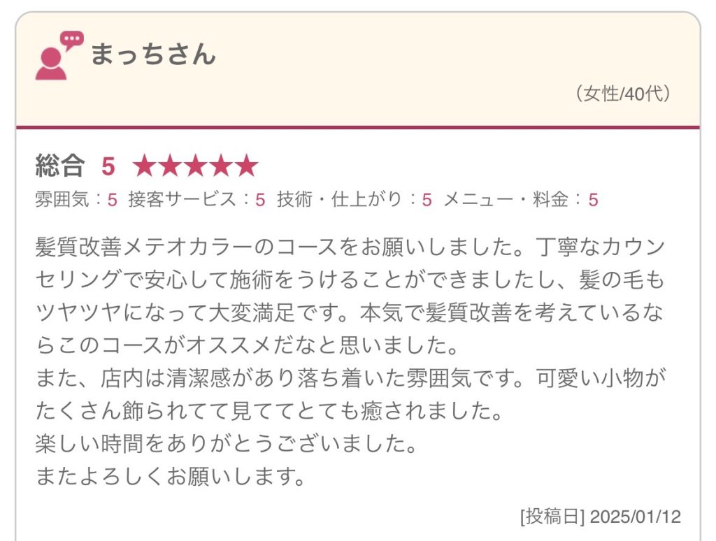 メテオ髪質改善の実感のお声