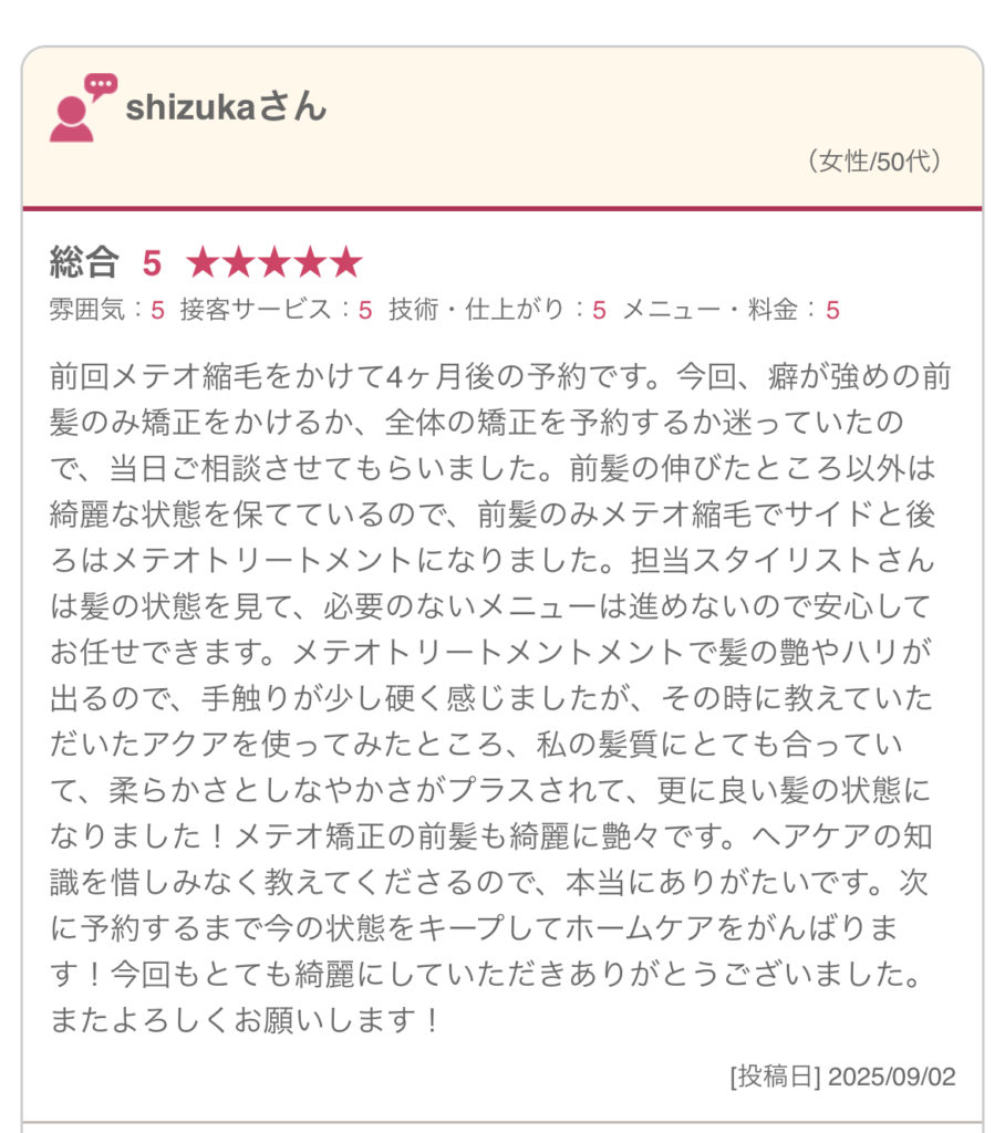 髪質改善を体験されたお客様からは、このようなお声を多くいただいています。