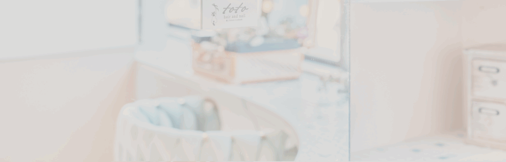トトちゃんが手(爪)で髪の毛をトトのえている様子を描いたものを形にし、サロン名も髪と爪をトトのえることで心までトトのってほしいそんな想いを込めてtoto hair and nailと名付けました。